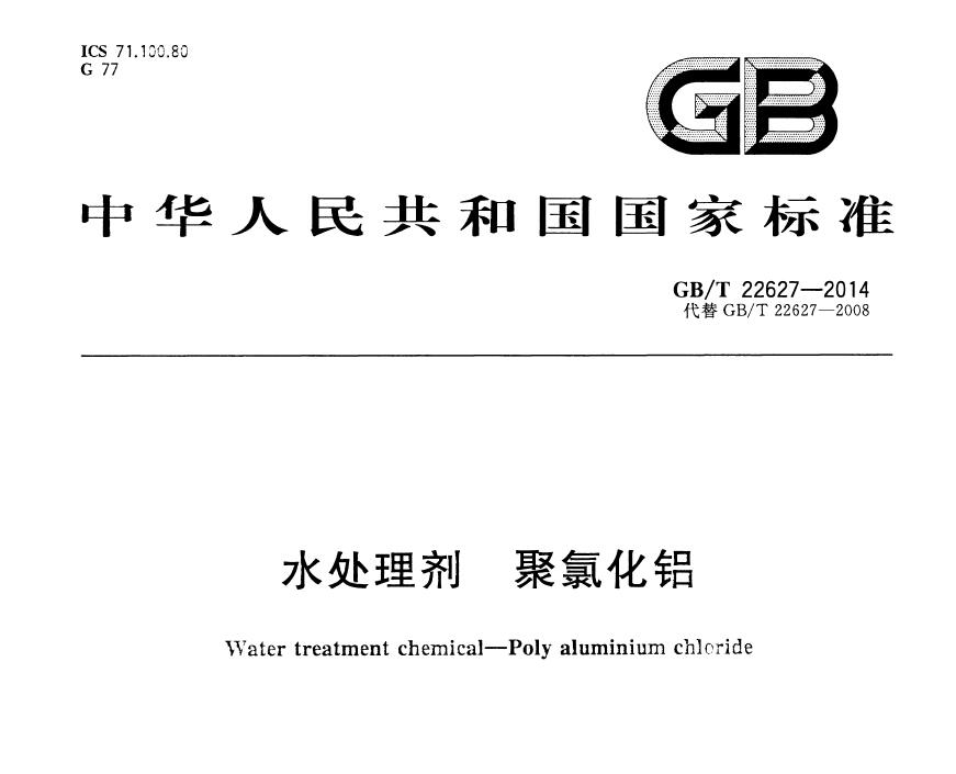 工業(yè)級(jí)液體和固體聚合氯化鋁GB/T22627-2014《水處理劑 聚氯化鋁》國(guó)家標(biāo)準(zhǔn)(2015年5月1日實(shí)施)代替GB/T22627-2008 《水處理劑 聚氯化鋁》。